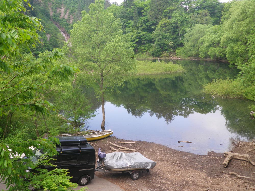 この様子だと当分無理の様です。今年のここでのボート遊びは絶望的(T_T) 過去にも通行止め規制はありましたが、林道入口から規制されるのはめずらしいですね。