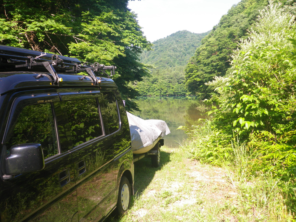 今回は、帰りに近くの砂利採石場にあるボートスロープから、カヌー大会でも使われる生保内川に入ってみました。