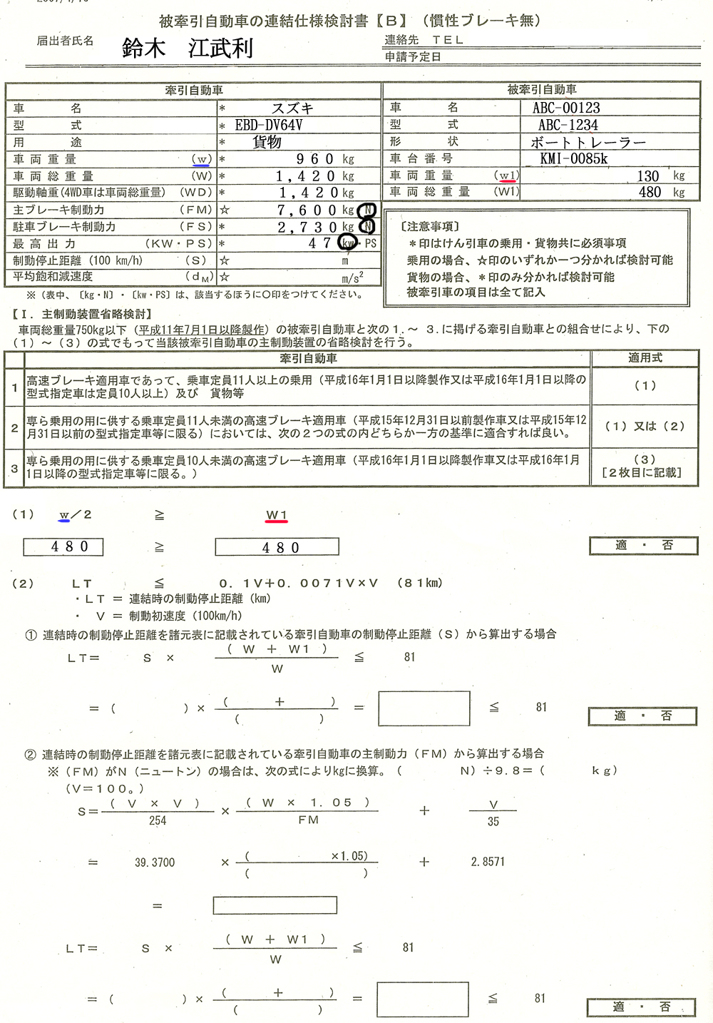 軽ワンボックスでもワゴンタイプなら牽引する方に「牽引可能重量」を記載できるようなので、こんな面倒な事は必要ないのですが、バンタイプだと牽引可能重量が極端に軽くなり、現実的に牽けるトレーラーが無いので記載できません。