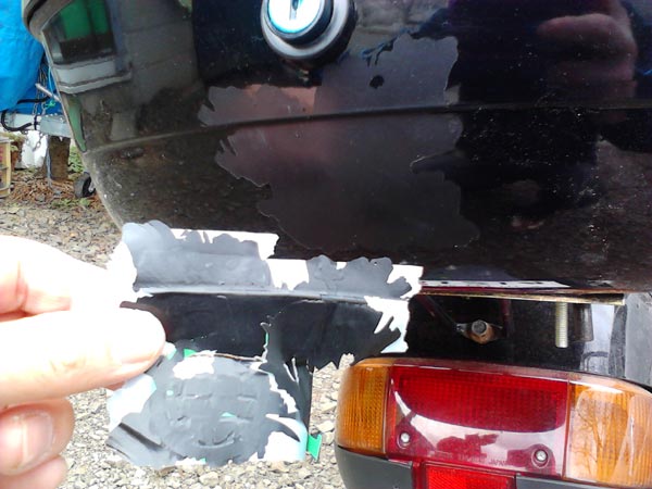 シールを張って保護シールを剥がしたら何と!元の塗装がガッパリ剥がれてしまいました。これには驚きました。