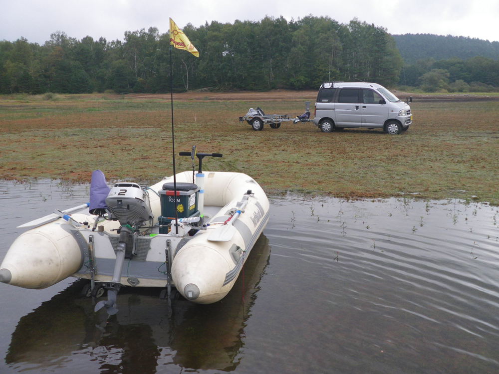 1回目は湖の廻りの道路からの様子見で、実際どうなっているかボートで一回りしてみました。