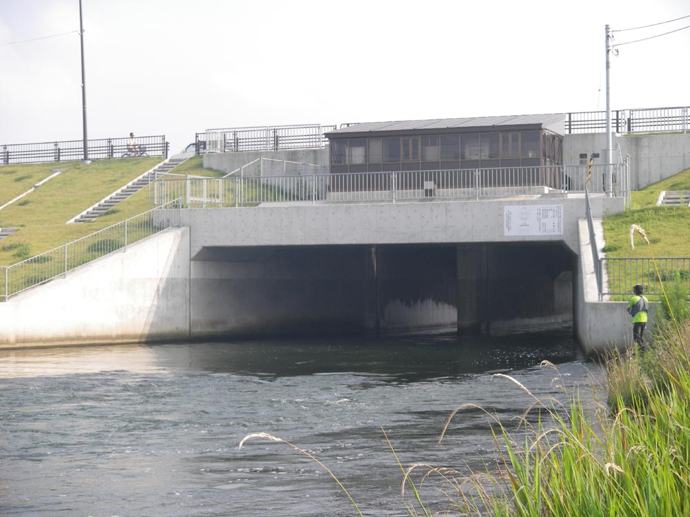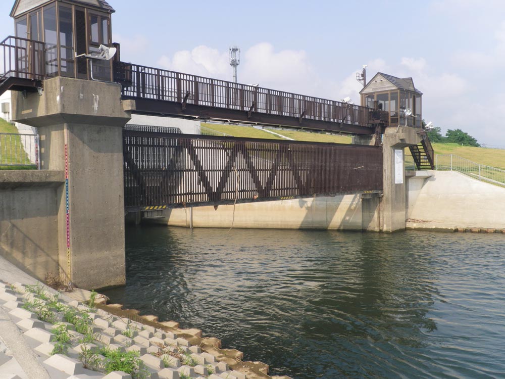 ここを通りますが、少し怖い感じです。狭いし暗いし、鉄骨の水門が恐怖感を与えます。