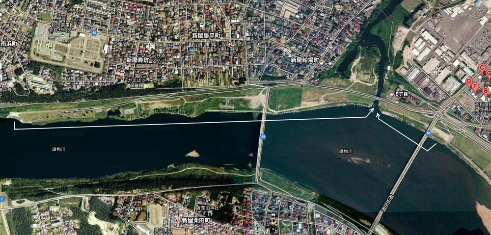 ここを自由に通れるという事は、苦労しなくても近くの船着き場からここを通過して秋田運河に入れます。