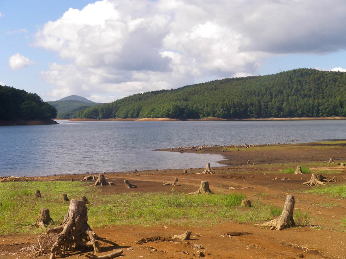 ここのダム湖は、なだらかになっている所が多いので、今までのダム湖とは違った魅力的な景色の所です。