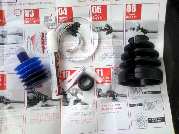 ブーツのアウター側バンドがきつくて締まらない。結局、結束バンドを使って締めるが、強度的に問題がありそう。経過を観察する事にしてひとまず終了。
