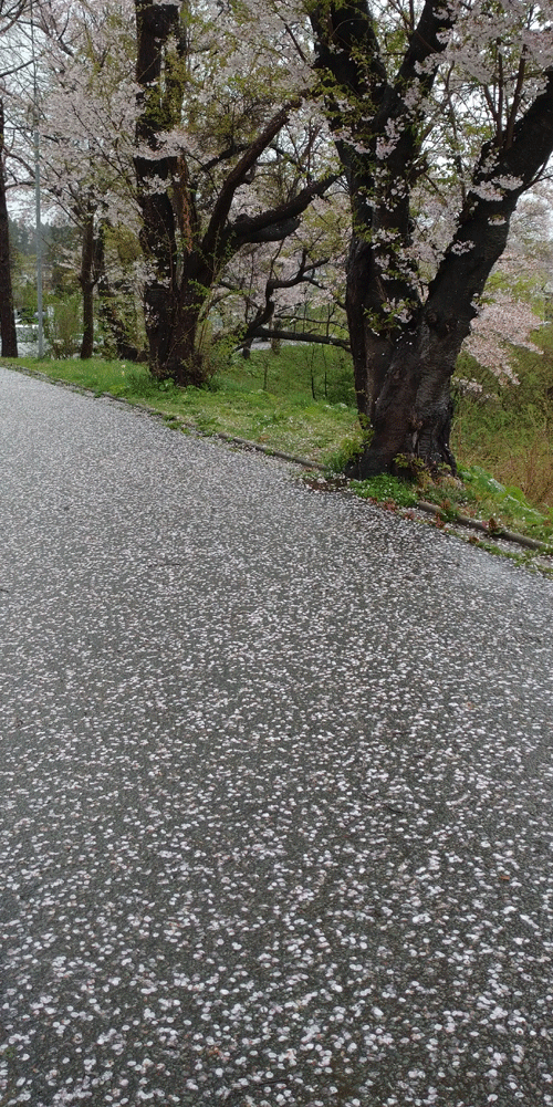 桜もそろそろ終わり、雨が終わりを早めてしまいました。 朝起きたら一面桜の花びらで埋め尽くされていました。散った後まで楽しませてくれる桜、来年も楽しみです。