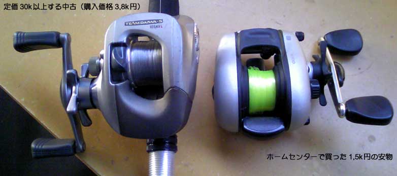 まずはリール。今までのリールは980円で買った普通のリールでしたが、操作ががイマイチなので、ルアー釣りに適しているベイトリールを買う事にして早速近くのホームセンターに行ってきました。