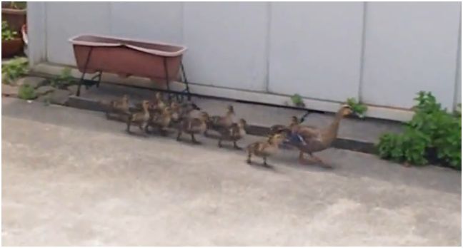 急いでカメラを取に行って撮影、その行進の可愛いこと!