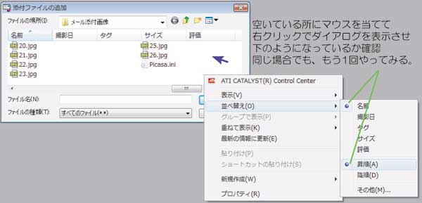 最近メーラーのファイル添付の時に開くダイアログ内の表示がおかしくなってしまったんですが、直し方が解らなく使い勝手が悪いままにしていました。